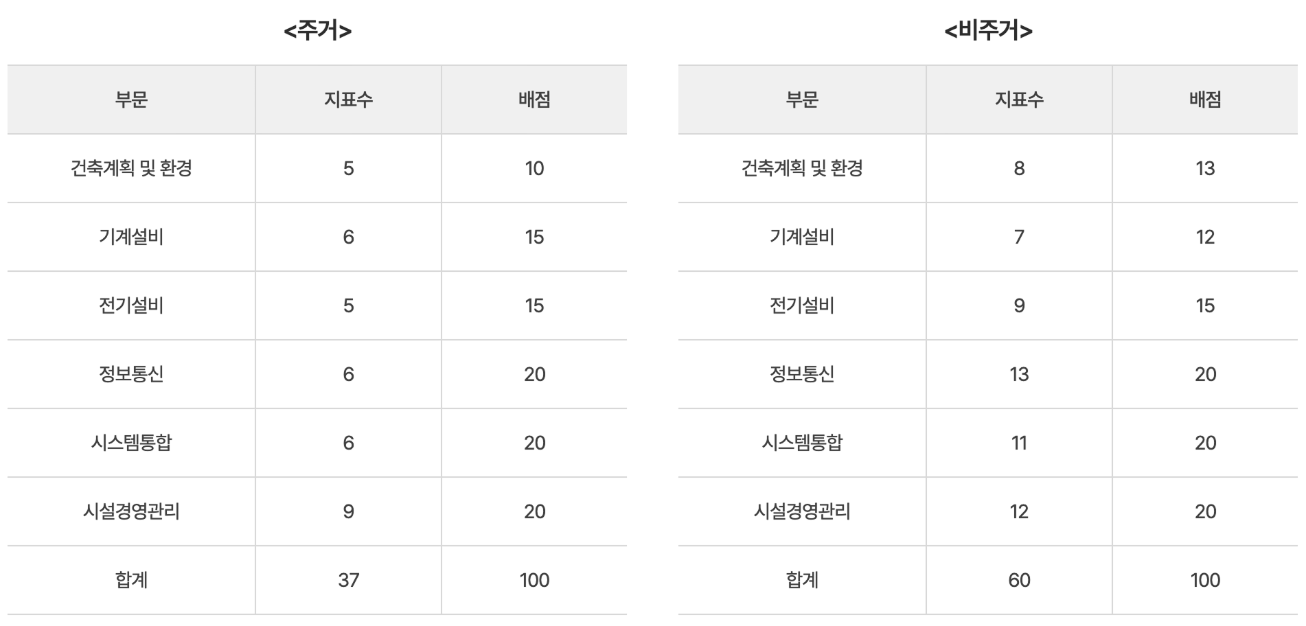 분야별 배점기준